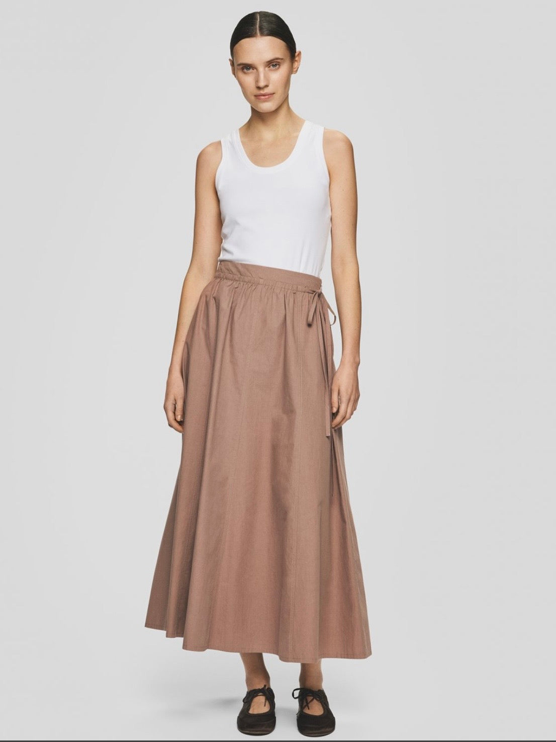 Cotton Maxi skirt with adjustable tie waistband and side zip.