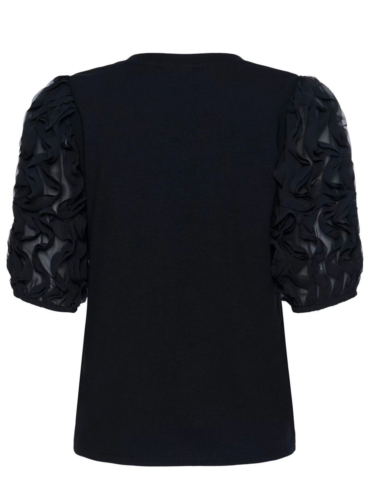The Linda top features a relaxed fit and statement puff sleeves with textured detailing.